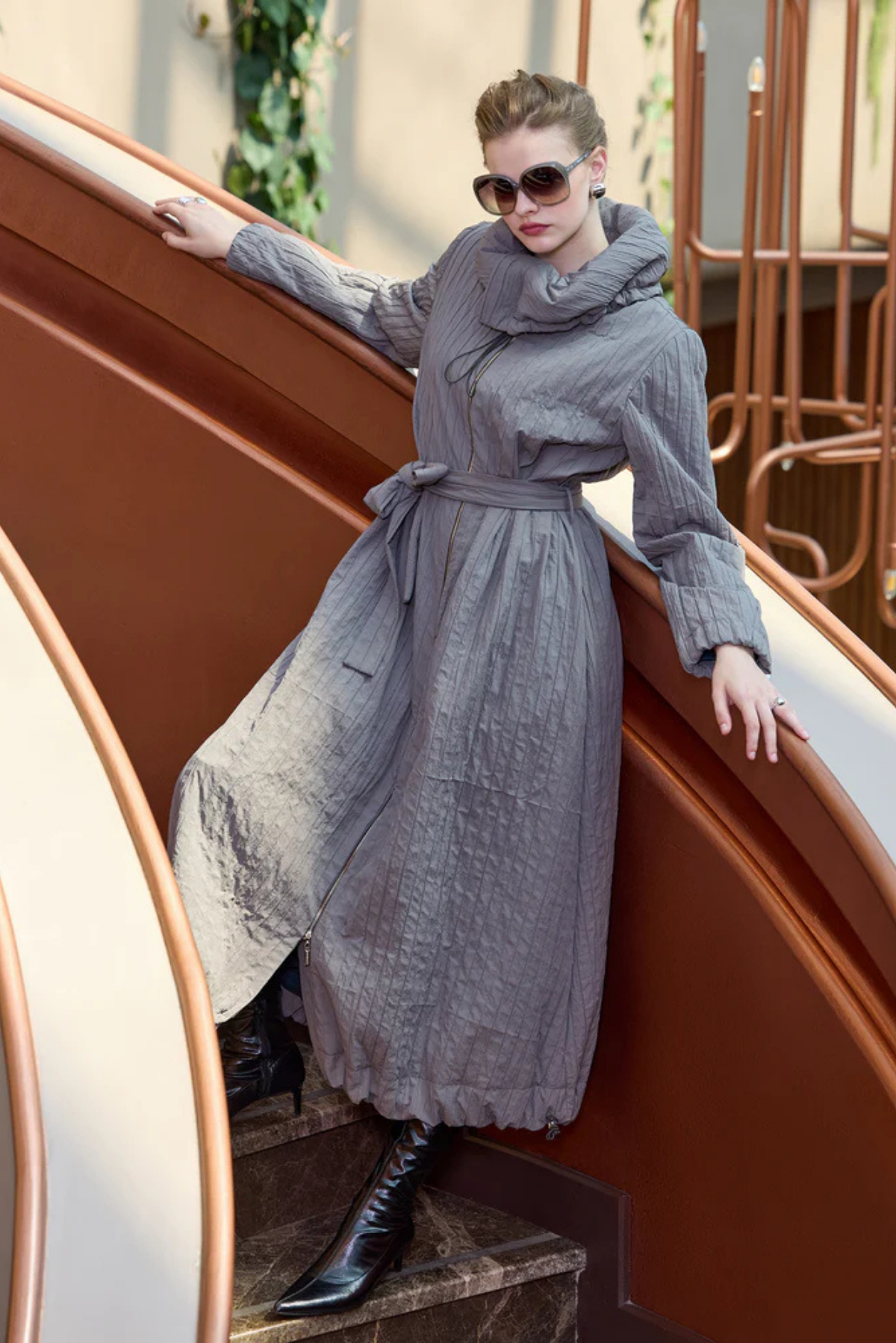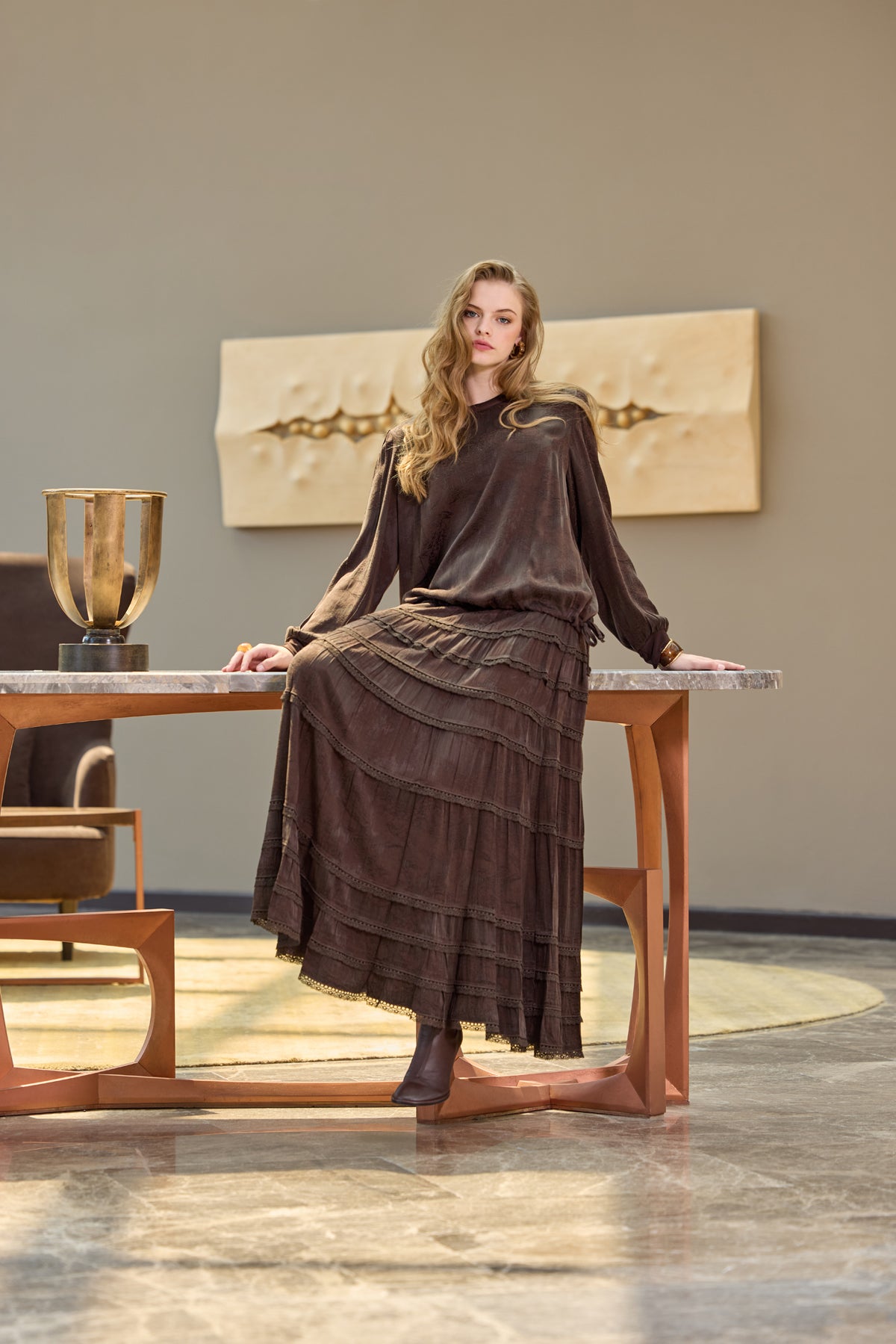 ŞİFON BOYUNA ZİNCİR PLİSE ETEK